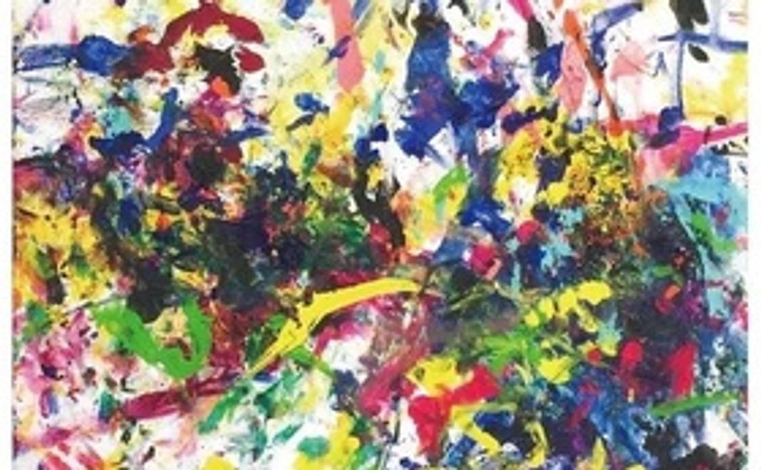 また、毎回、展示会場には、「成長する絵画」クラスで実際に使用されいる画材を置いています。それらを使って、来場された方々が展示作品から影響を受けながら、1枚の大きなキャンバスに自由に描き重ねていく「成長するキャンバス」という共同制作を行っています。これまで、幼児からご高齢者まで600人以上の手が加わった大作になっています。今回もさらに、来場者に描き重ねてもらう予定です。