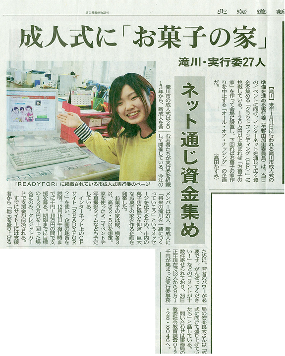 (北海道新聞11月27日)かなり目立つ位置に掲載していただきました。ありがとうございます。