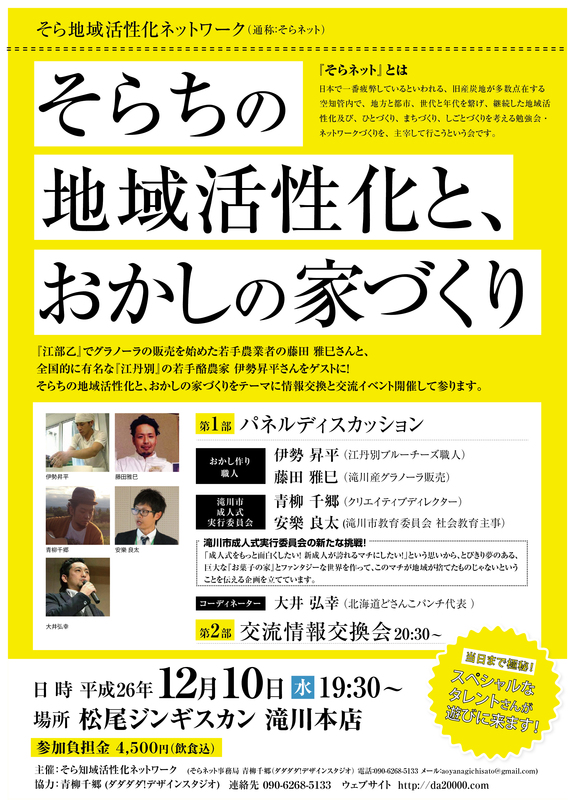 12月10日(水)「そらちの地域活性化と、おかしの家づくり(そらネット主催)」を開催します。