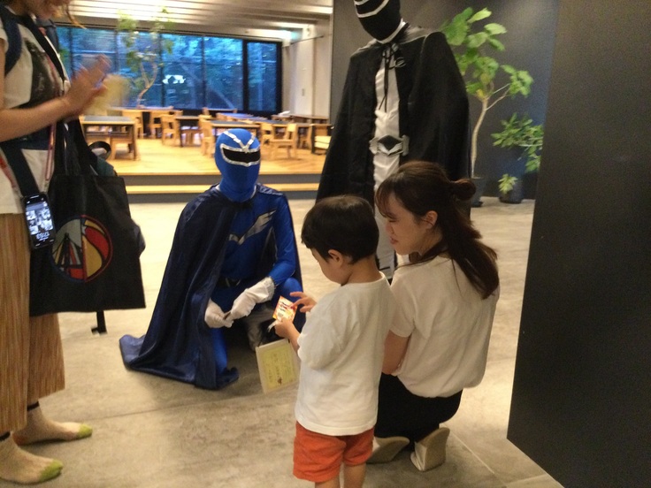 その後はブルーも颯爽と駆けつけ、一緒にお迎えを待ち、ご家庭にパンプキンジャーカードの配布を行いました。