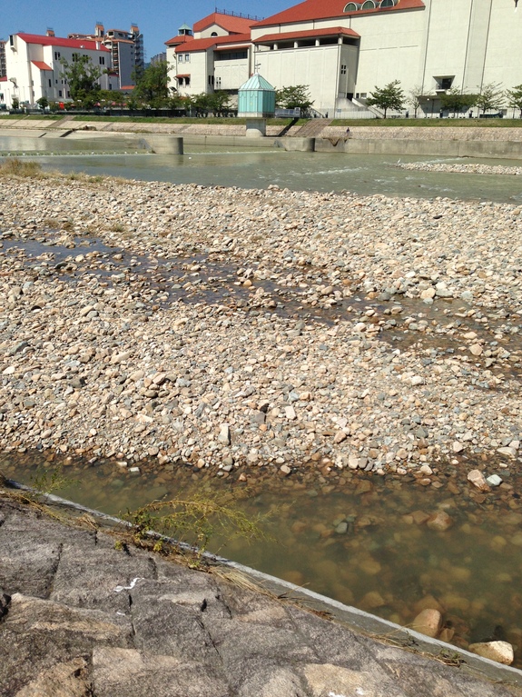 橋からよく見えるところにある「生」。いろんな人が気にしているのか、歩きながら川上を見ている人が多いのです。