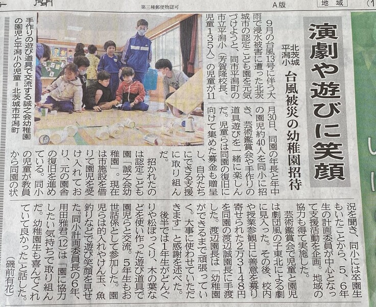 楽しい時間を過ごすことができ、子どもたちは大喜びでした。平潟小のみなさん、すてきなプレゼントをありがとうございました。
