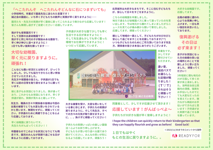 ご支援いただいた皆さま方より、温かい応援をいただきました。