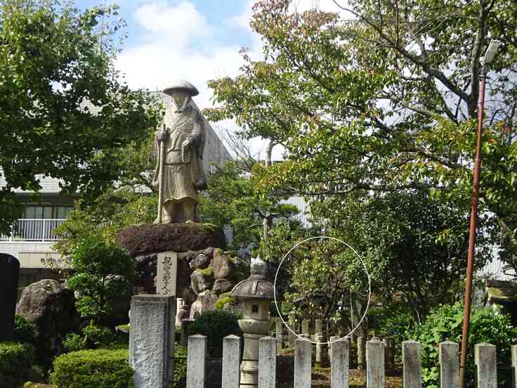 清明の南端、北陸道に沿った中荒井の一角に浄土真宗の開祖、親鸞さんの大きな像が建っています。今から八百年ほど前、念仏を禁止され越後国に流される途中、中荒井村の辻の森で村人に教えを説いたそうです。そしてお昼に出たおにぎりを食べると中に入っていた梅干しの種を路傍の土に埋めこう言いました。