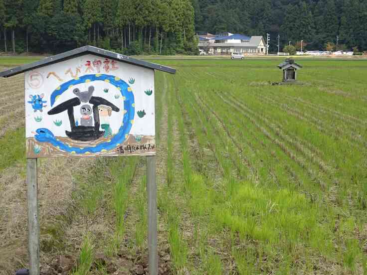 昔、この村の田んぼを耕地整理したときのことです。若者が仕事をしていると大きな白蛇が現れました。白蛇は神の使いとも言われ、おそれられていましたが、若者はびっくりして持っていた道具で殺してしまいました。次の日の朝、元気だった若者が突然亡くなってしまったのです。