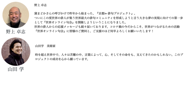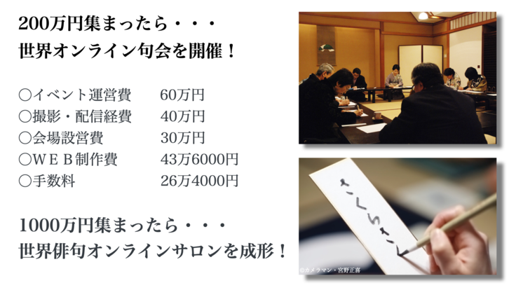 そんな思いで、「世界オンライン句会」を開くために、クラウドファンディングを始めました。