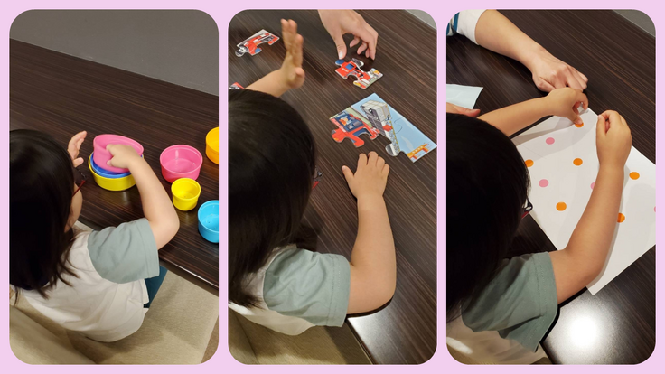 発達に特性のあるお子さんの中には、集中が続きにくかったり、一度に多くの情報を処理するのが難しかったりして、一般的な教材が合わないことが多くあります。私たちは、そのようなお子さんたちも「できた!」という体験を積み重ねていけるよう、教材や課題を丁寧に準備します。たとえば、ひらがなの練習ひとつとっても、文字の大きさ・練習する文字の順番・なぞる線や背景の色など、お子さんの様子を見ながら細かく調整し、その力を引き出していきます。