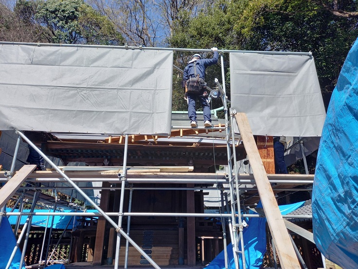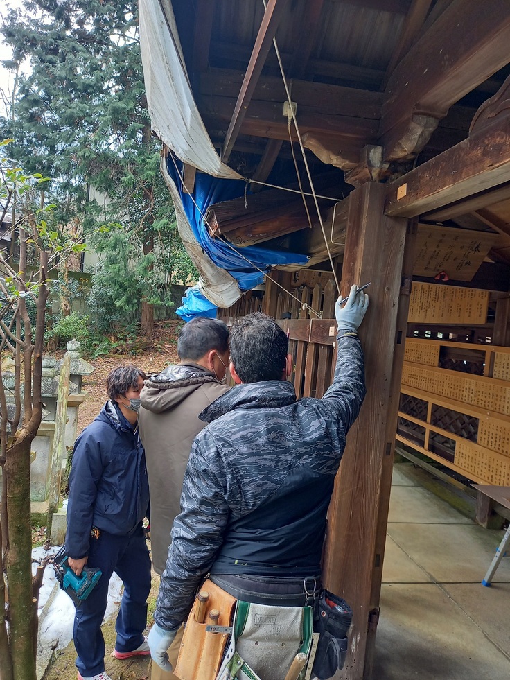 早速次の日から唐門の解体にかかる下準備、回廊取替に必要な詳しい調査が