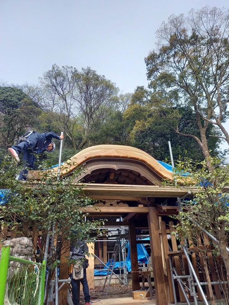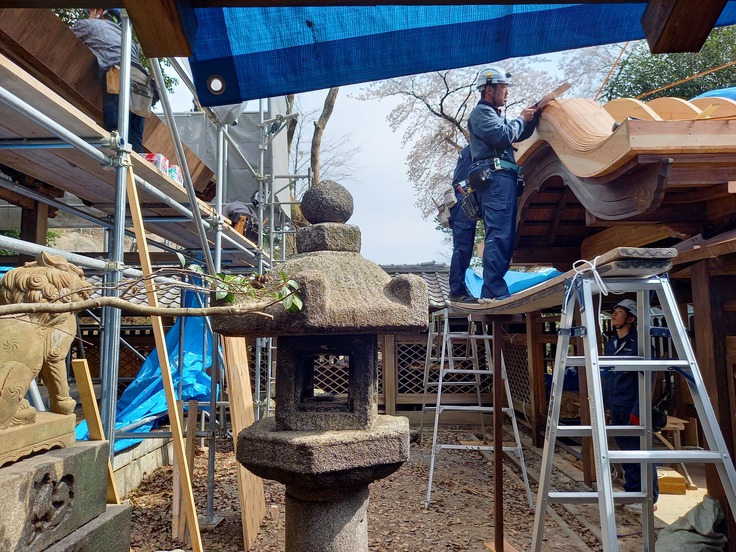 その後、幣殿上部に屋根を設置する工事も進められました。