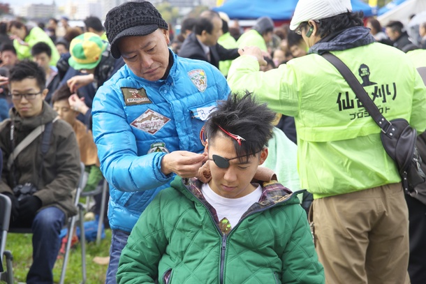 この「仙台刈り」とは、仙台藩祖伊達政宗公の兜をヒントに、フロントはアシンメトリー、後頭部は震災に打ち勝つというヴィクトリーのV、サイドは刈り上げたスタイルです。前回は惜しくも更新にはいたりませんでしたが、多数のメディアで取り上げていただけたこともあり、「仙台市が面白いことをやっているぞ」という雰囲気を流すことができました!