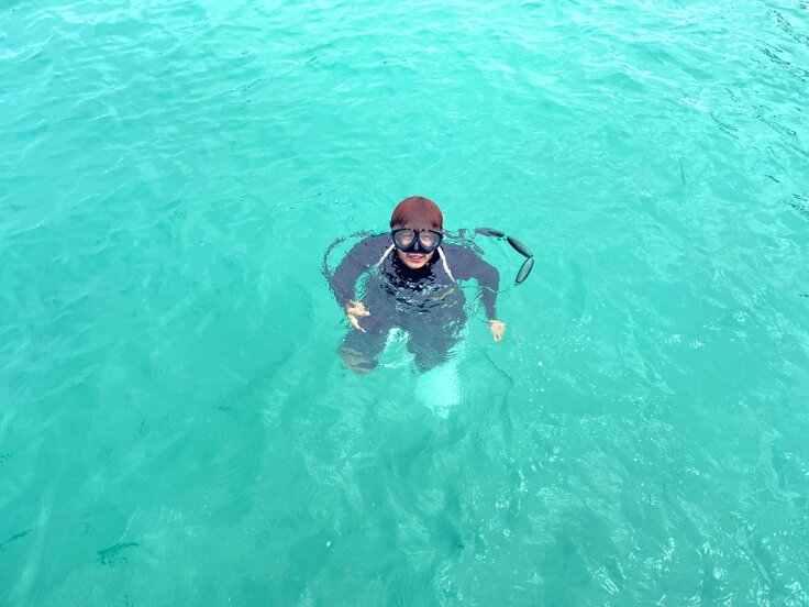 ↑潜って船底のプロペラの位置を確認してもらいました。