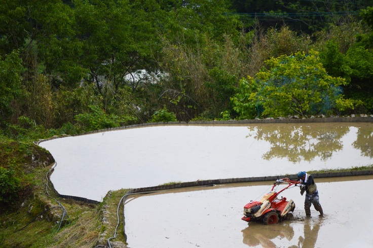 平地の田んぼと違い、狭い田んぼが数多く「雨が上がったのでカッパを脱いで周りに置き、田植えをしてやれやれ終わったからとカッパを取ったら、その下から小さな田んぼが現れた」という逸話があるほど、手間も相当かかるのに一枚当たりの田んぼの収量が少ない棚田(千枚田)。