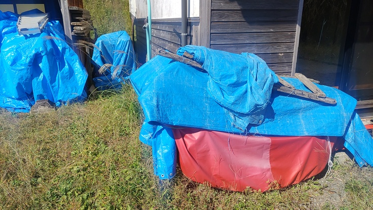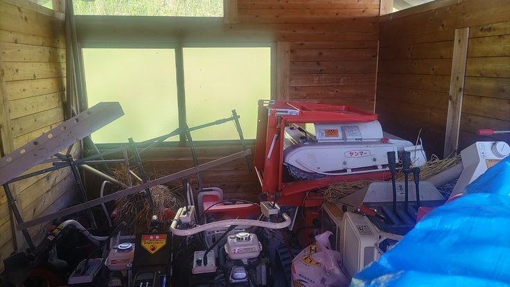 しかしいざ譲り受けてみると、ありがたい反面、今度はその置き場所に困ることになりました。保護シートをかけたりとできる限りの工夫はしているものの、我が家の軒先で風雨にさらされる農機具…。自己資金だけでは農機具庫建設もままなりません。さらに進む高齢化によって神在居の千枚田は衰退していくばかりです。