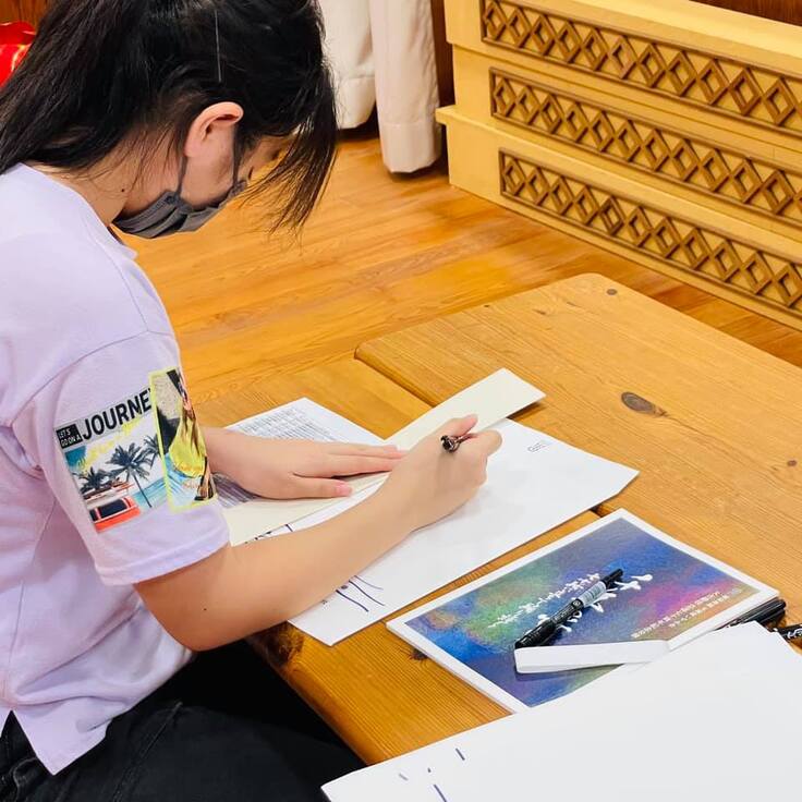 さらに装丁には、いずみ会ならではの青色に染めた月桃紙を使っているため、門下生が手づくりで加工しました。そのまま立てて飾っていただくことも出来る仕様になっております。