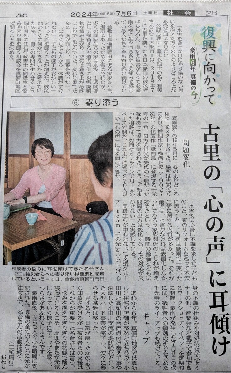 この日、山陽新聞の「復興に向かって」という連載の⑥に、相談活動を取り上げていただきました。