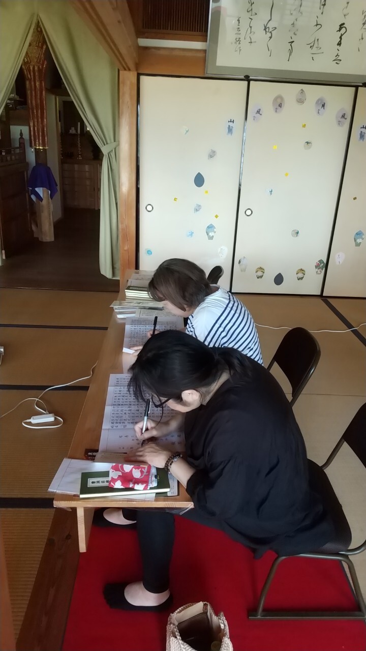 朝は、写経を行いました。皆さん、初めてという方ばかりで、心鎮まる時間を過ごされました。