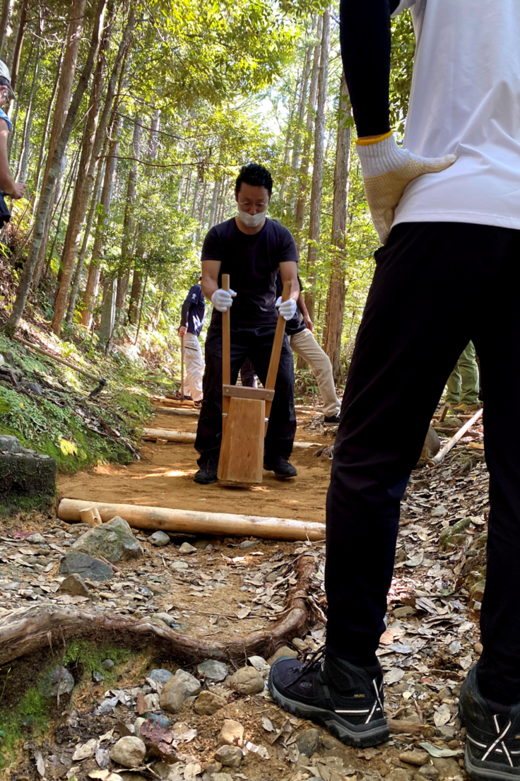 その自然の影響によって参詣道の土が雨で流れてしまうため、持続的な補修を行う活動が必要となります。