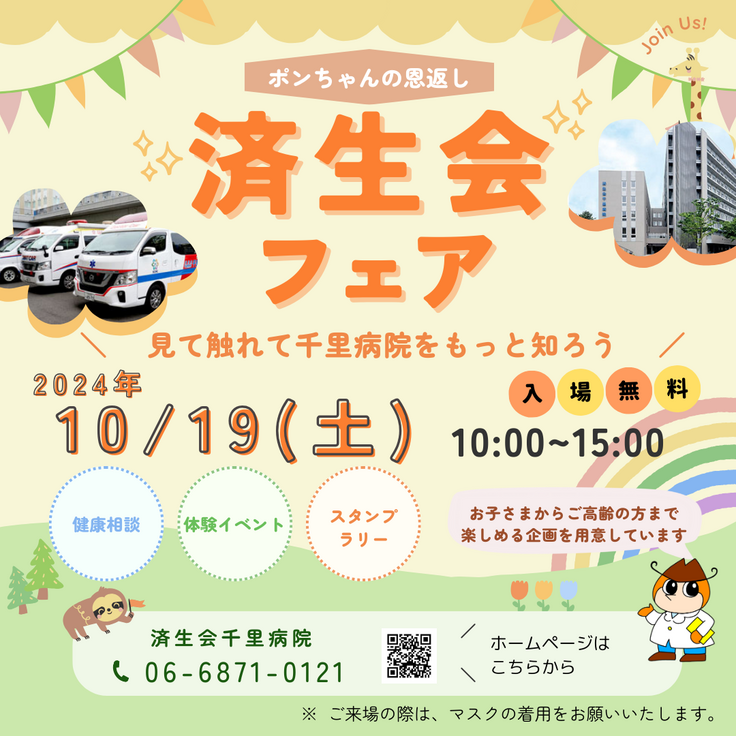 今年もこのイベントを通じて、地域の方々に済生会千里病院をより知っていただければ幸いです。
