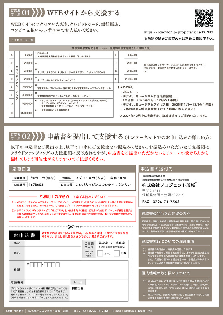 ・有効期限:2025年1月〜12月(ただし、現_筑波海軍航空隊記念館 友の会にご入会の方は、現行の会員期限が失効したあとの1年間(2025年4月〜2026年3月))
