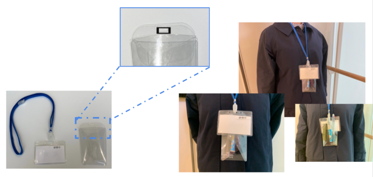 クリアポーシュに切り込みを入れればネームプレートとも合体できる!このようにすれば、ポケットのない服にも対応できます!