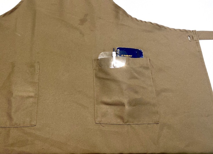 エプロンのポケットは基本的に大きく作られているため、ペンがポケットにかけられていないとすぐに出すことができません。