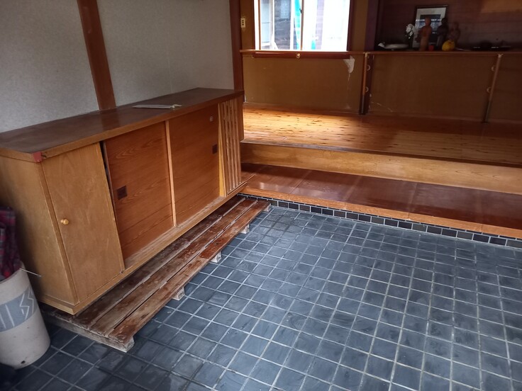 地震で割れたガラスなどを捨て、タイルを拭いて、木の部分は悔しいから全てワックス掛けました!