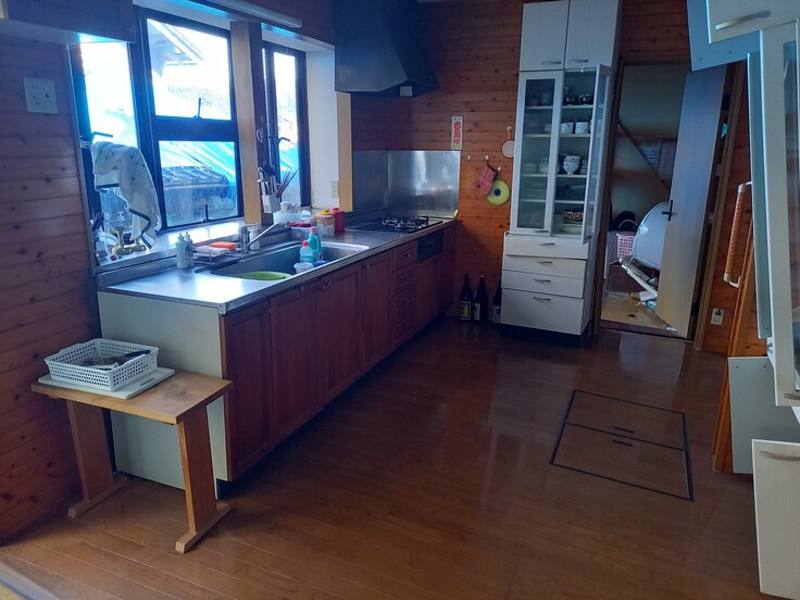 シンク周りや壁なども拭いて、使えるよう見えますが...