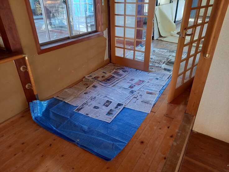 仕方ないので、床だけでも保護しました。