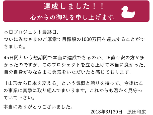 いずれ日本全国のモデルとなるようなシェアハウスにすべく、本気で取り組むことをお約束します。どうかご支援のほど、よろしくお願いいたします。