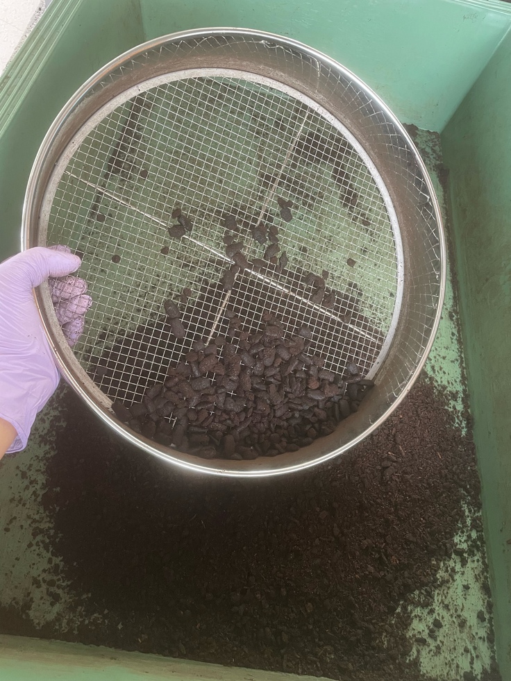 これを篩にかけて糞と土に分別することで、糞はバイオマス発電、土は農業用の肥料に再利用することができます。ヘラクレスオオカブトのブリードではほとんど無駄がなく、SDGsと地域社会への貢献ができるのです!
