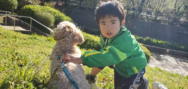 チャタロウ(愛犬)とエイタン(三男)がとても嬉しそうです♡