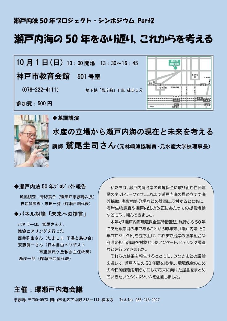 「瀬戸内海の50年をふり返り、これからを考える」シンポジウム Part2のご案内