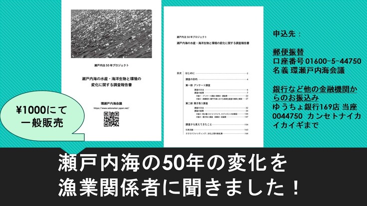 「瀬戸内海の水産・海洋生物と環境の変化に関する調査」報告書pdf版をお送りします。ご不要の場合はお知らせください。