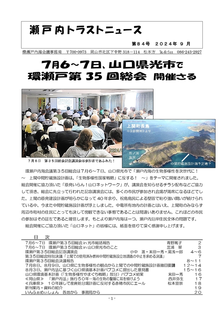 瀬戸内トラストニュース84号を発行しました