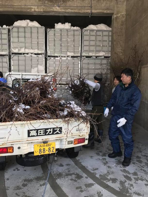 折れた桜の枝を集めた私たちは安塚区の雪室に運びました。