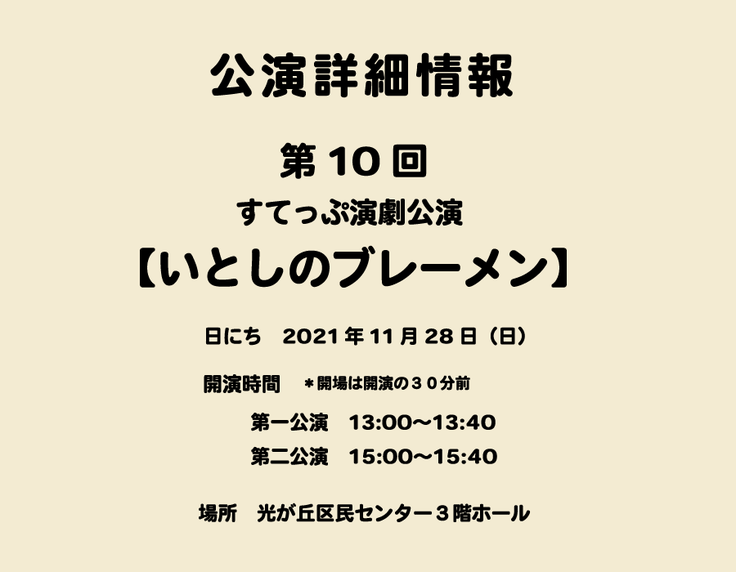 公演終了後、希望者の方には、こちらの劇団の活動に関するお話など優先的にお話させていただく時間も設けます(15分程度)。