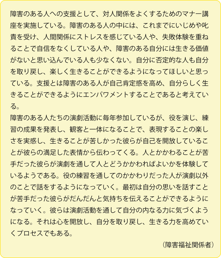 障害者劇団の活動の場を広げたい。誰もが自分らしく生きられる社会へ