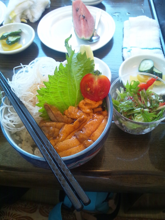 この写真は、南三陸町名物のキラキラ丼です。ウニの乗った海鮮丼なのですが、なんと、このキラキラ丼、季節によって中身が変わるのです!(ウニは夏の5月~8月限定です!)
