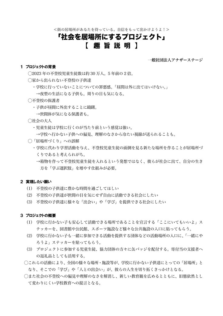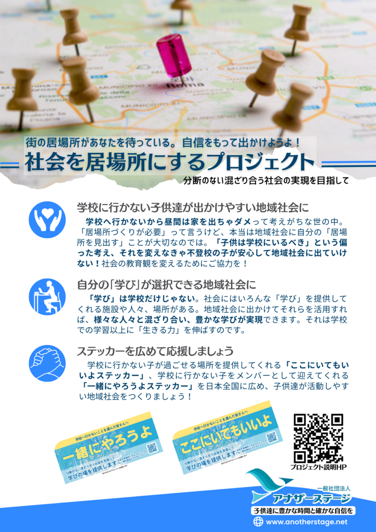 社会を居場所にするプロジェクトのチラシと趣旨説明書をアップします。
