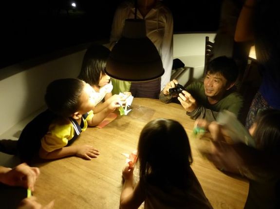 小さい子達は折り紙に夢中でお兄さんのことを離しません。
