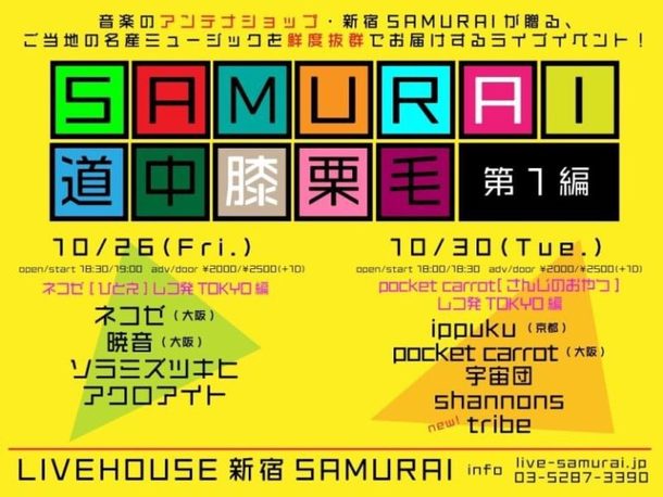 ■10/30(火) SAMURAI道中膝栗毛第一編 pocket carrot[さんじのおやつ]レコ発東京編