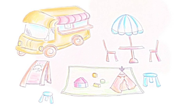 来年の春4月までにキッチンカーを購入し、内装、発電機、イートスペース、キッズスペースなどを制作します。