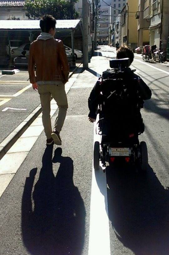 TAKAは見ての通り電動車いすで、四体麻痺と言って首から下が動きません。口に加えた筆で作品を描き出します。彼自身も無限の可能性を体現しています。