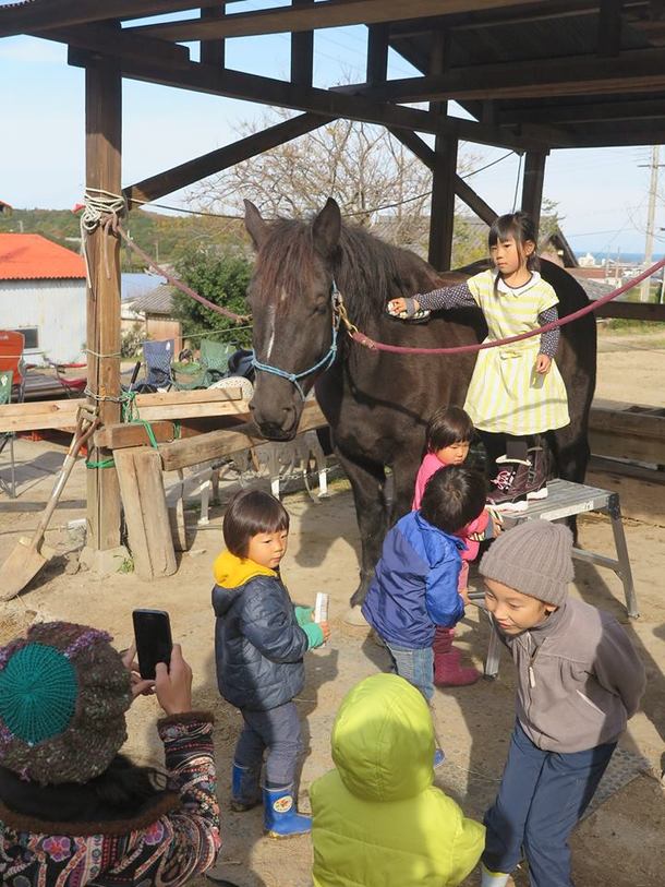 又、2歳の娘は馬の世話を喜んで手伝ってくれており、馬たちもやさしい眼差しで子どもたちを見守ってくれています。2歳と0歳4ヶ月の二人の娘たちとその友達への情操教育にも、大きな役割を果たしてくれていると感じています。