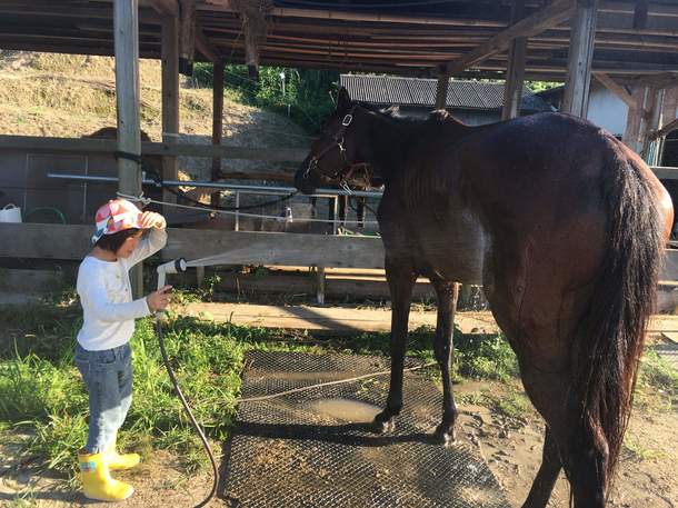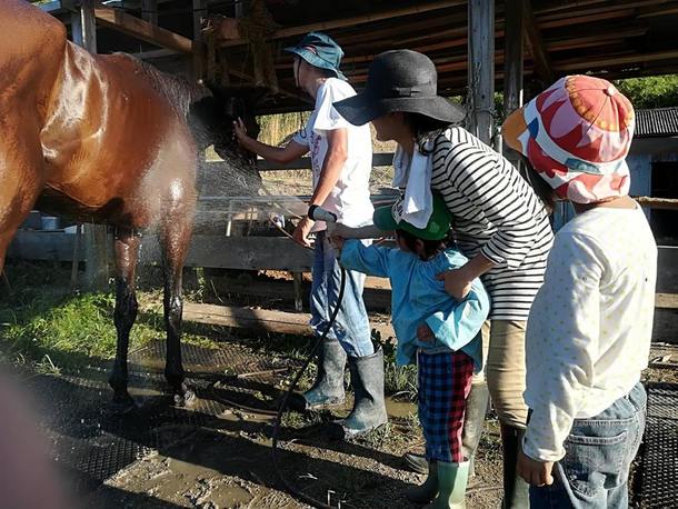 (朝活(6時~8時半のうちに開始)は涼しくて、リーズナブルなのでおすすめ。馬を洗うのを希望される場合は夕方の時間帯で体験可能です)