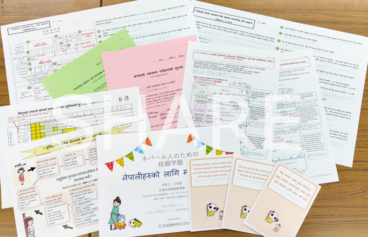 〇外国人母子支援者のための相談窓口で、医療通訳以外のニーズに対応するための多言語資料が提供できるように、これまでにシェア独自、シェアと自治体が連携して製作した外国人母子支援で役立つ多言語資料2種の増刷費用、対応言語を追加するための翻訳・印刷費用、郵送代