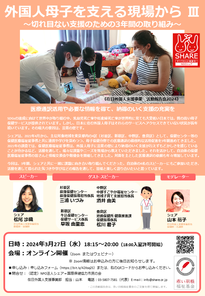 シェア=国際保健協力市民の会 在日外国人支援事業担当 山本裕子