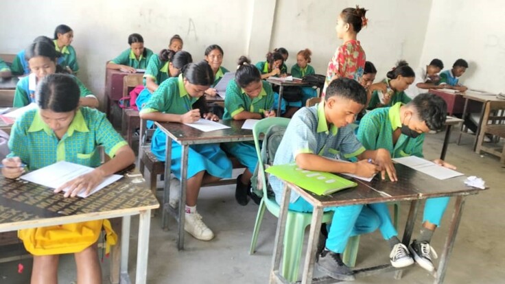 東ティモールの教育システムは、就学前教育、基礎教育、中等教育に分けられ、3~5歳は幼稚園、6~12歳は小学校(6年間)、13~15歳は中学校(3年間)、16~18歳は高校(3年間)の段階に応じて学びます。小学校1年生から、中学校は7年生、高校は10年生からと、学年を数えます。