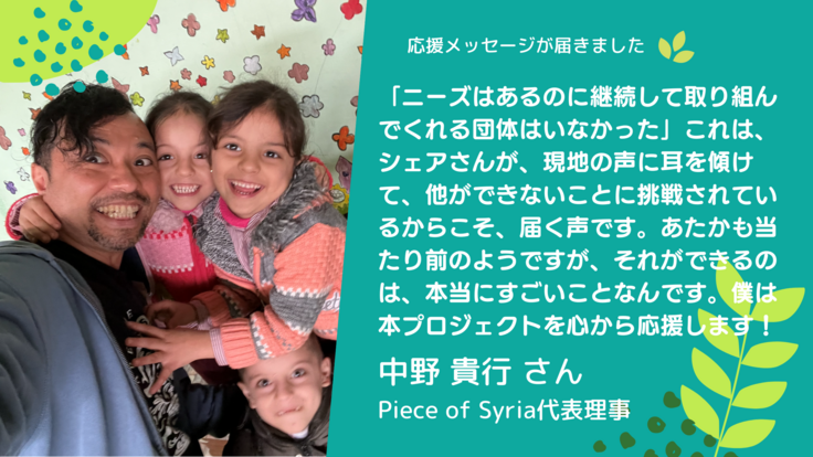 ✨🌏Piece of Syria代表理事の中野 貴行さんより応援メッセージをいただきました📢📢📢