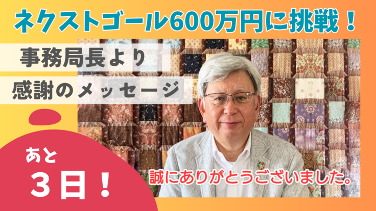 【カウントダウン】残り3日!事務局長の八尋英昭からのメッセージ